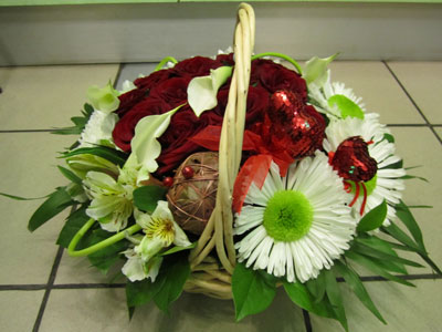 Состав букета: роза, хризантема одноголовая, альстромерия, миникалы, чика, зелень
