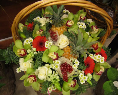 Состав букета: орхидея, орнитогалум, сантини, роза, минигерберы, ананас, зелень