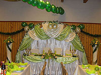 Цветочное оформление свадебного зала позволит молодоженам и их гостям почувствовать себя в самой настоящей сказке. Грациозные розы, чувственные тюльпаны, наивные хризантемы и море зелени создадут необыкновенную атмосферу праздника любви и счастья и наполнят сердца радостью. А божественный цветочный аромат добавит чарующего волшебства. Поэтому если Вы решили заказать оформление свадебного зала цветами у нас, то это правильный выбор. Мы сделаем все возможное для осуществления Ваших желаний.