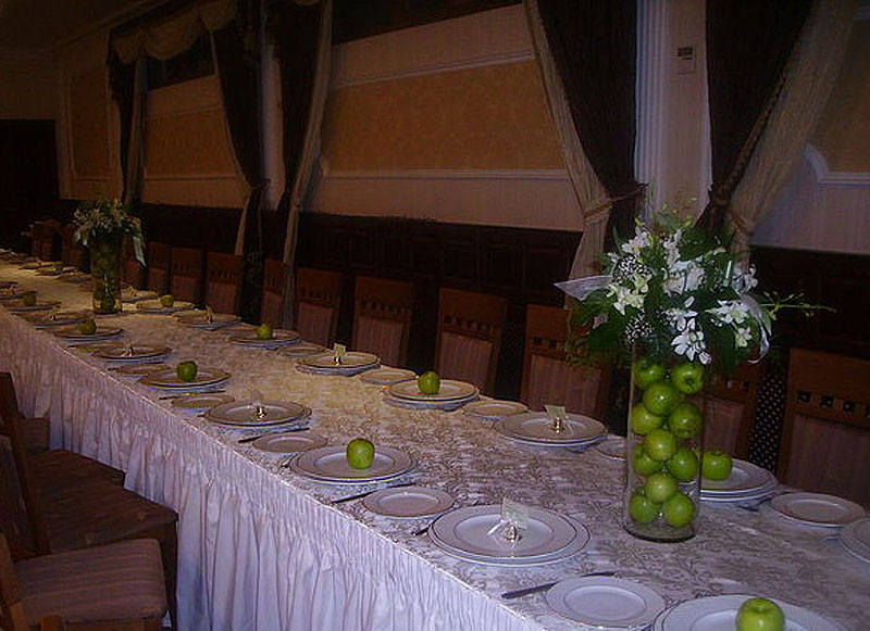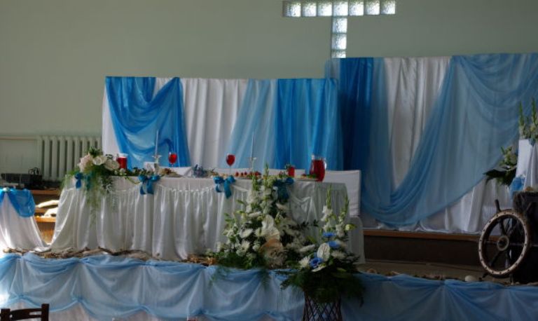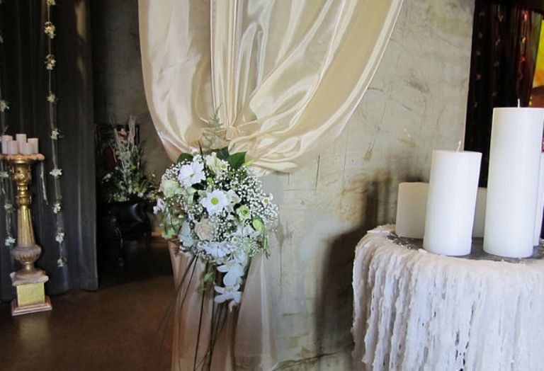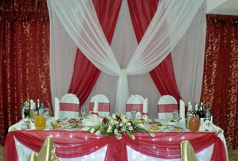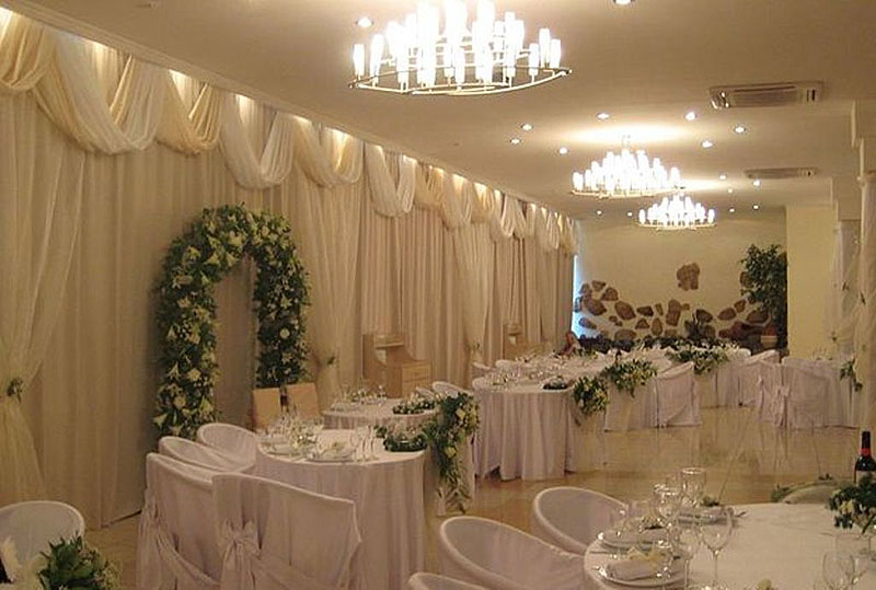 Декорирование зала тканью, свечами