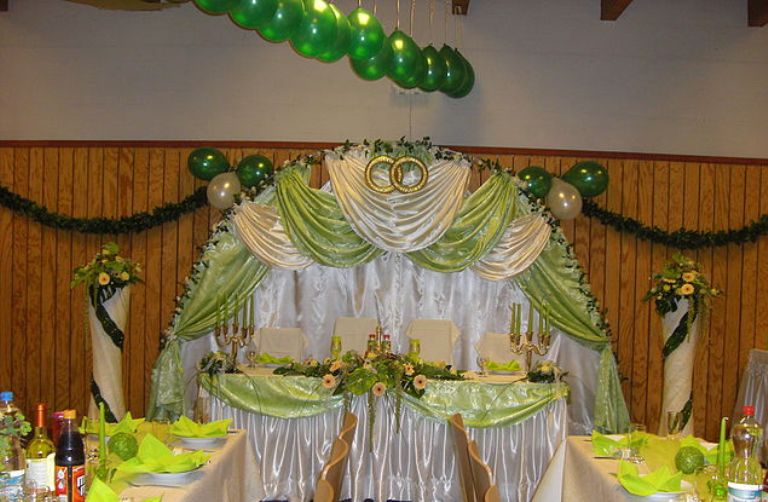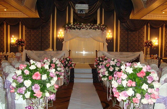 Оформление свадебного зала цветами